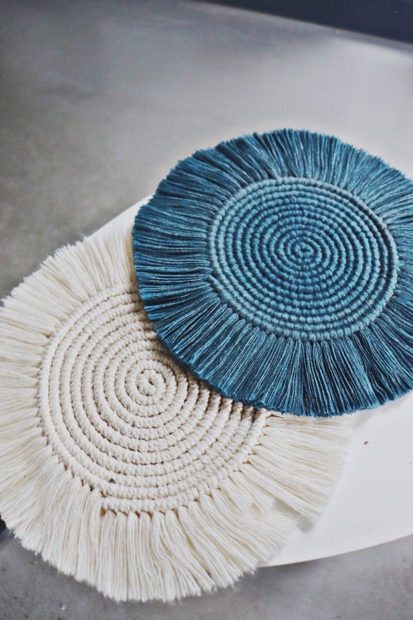 Grand coaster en macramé format grande plante.Modèle avec une circonférence d'environ 35 cm.
