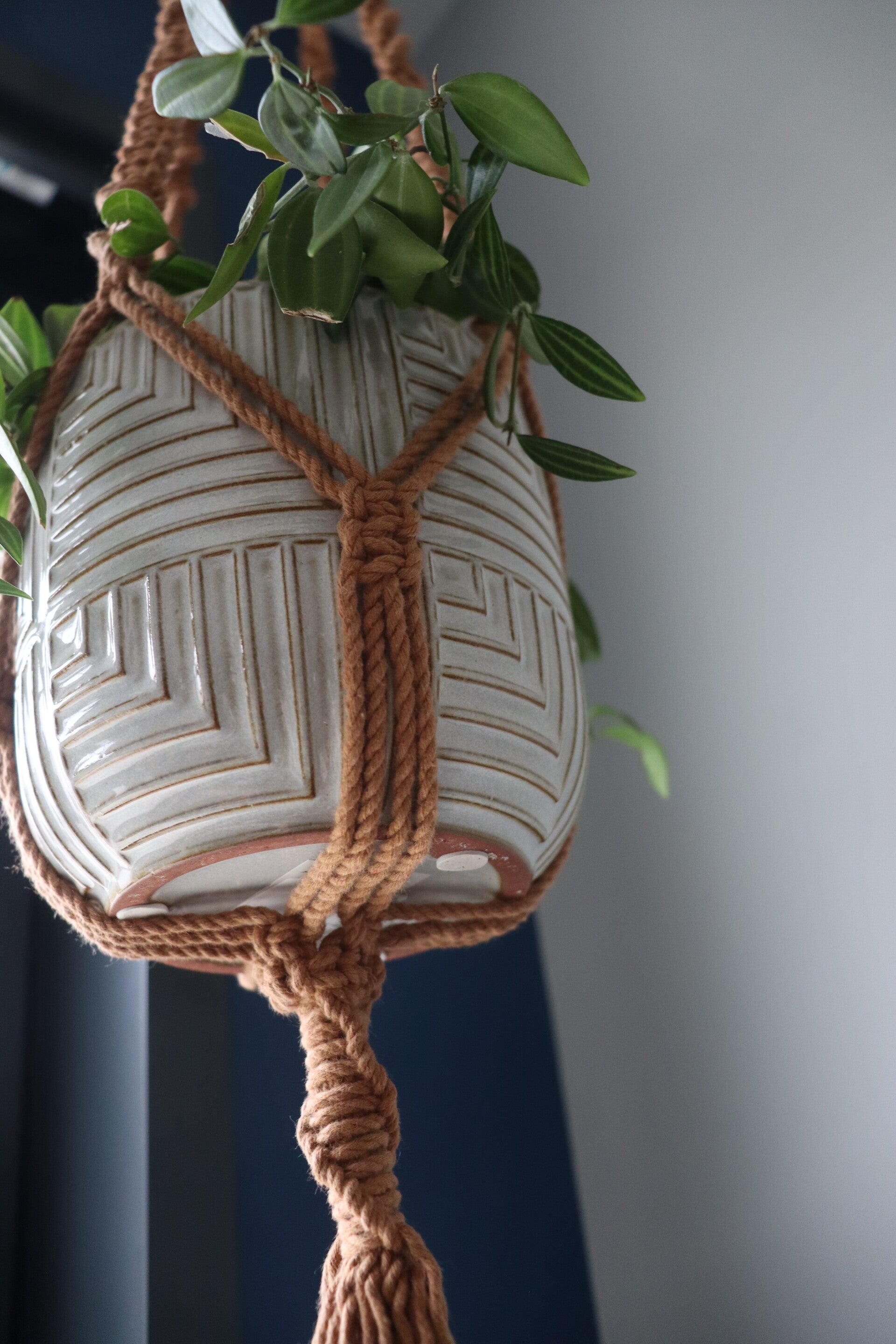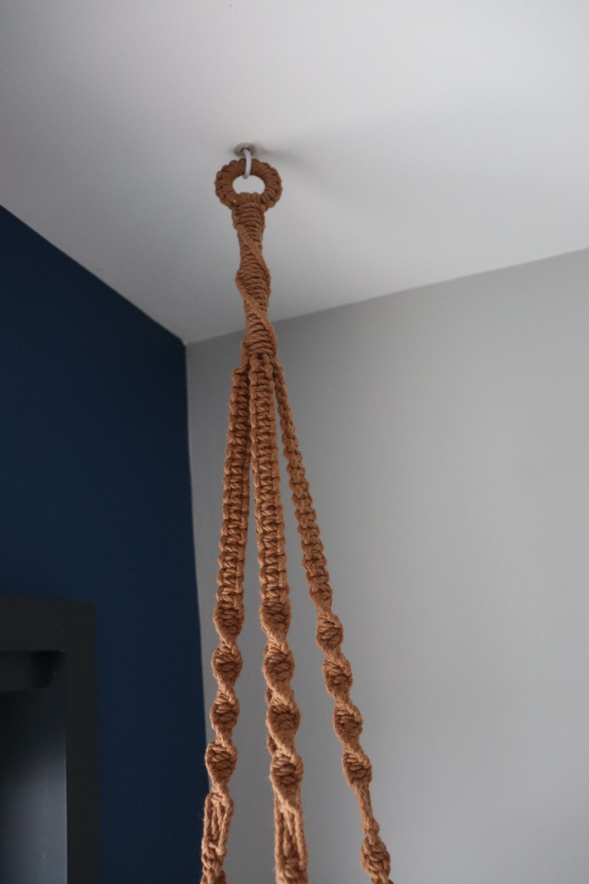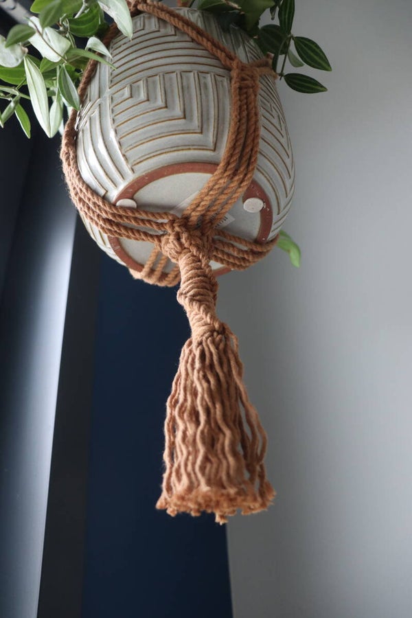 Suspension pour plante en macramé confectionnée en 100% coton certifié OEKO-TEX® avec une corde 3 tressée 3 plis 3mm coloris au choix: marron
