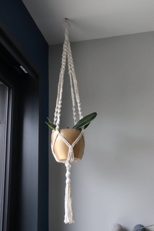 Suspension pour plante en macramé confectionnée en 100% coton bio certifié GOTS avec une corde peignée * 3mm coloris écru