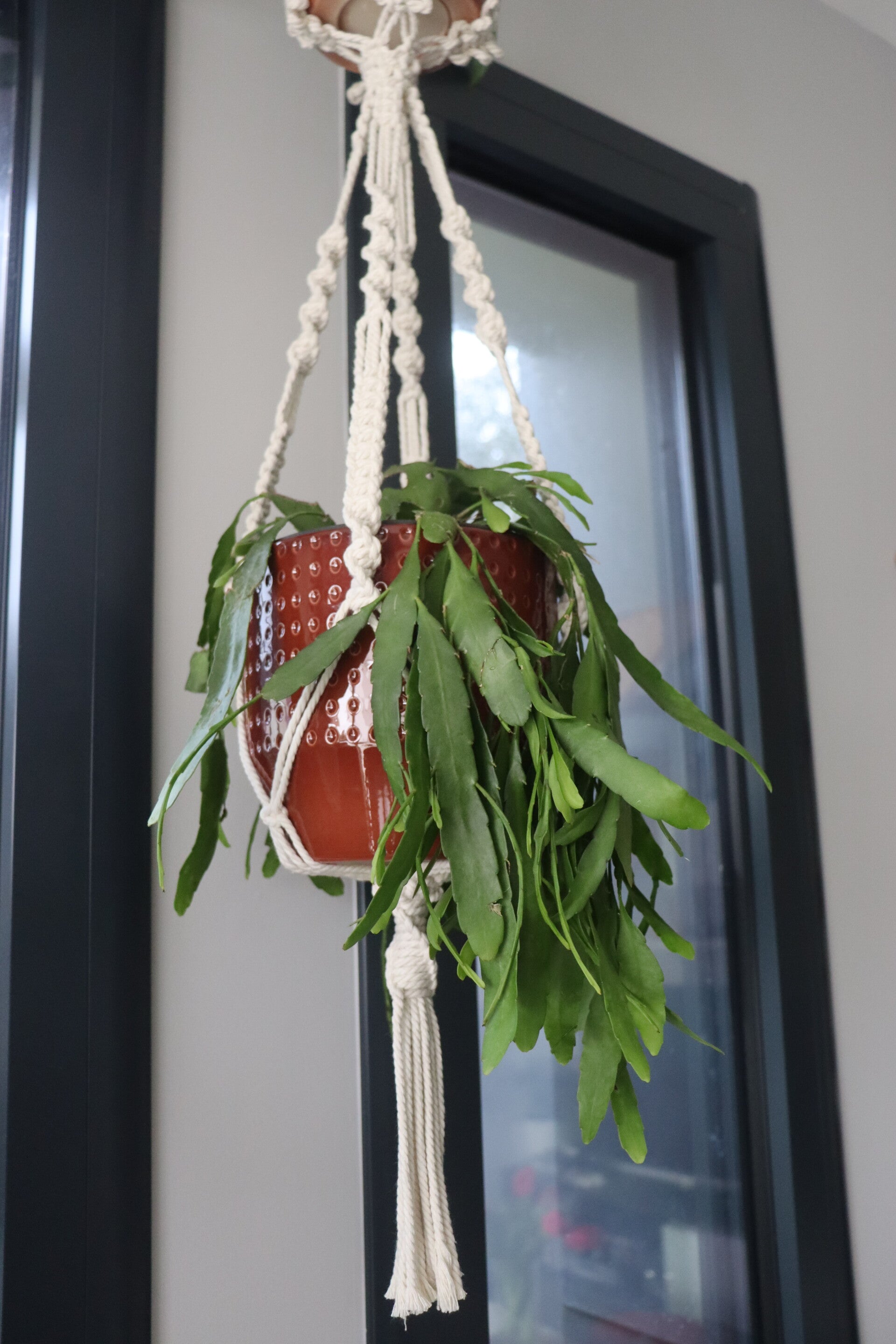 Suspension pour plante en macramé confectionnée en 100% coton bio certifié GOTS avec une corde tressée 3 plis 3mm coloris écru