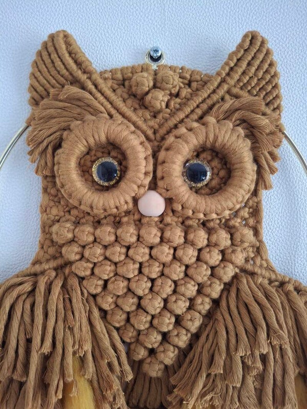 🦉 Hibou / Chouette en macramé – Bambou doré